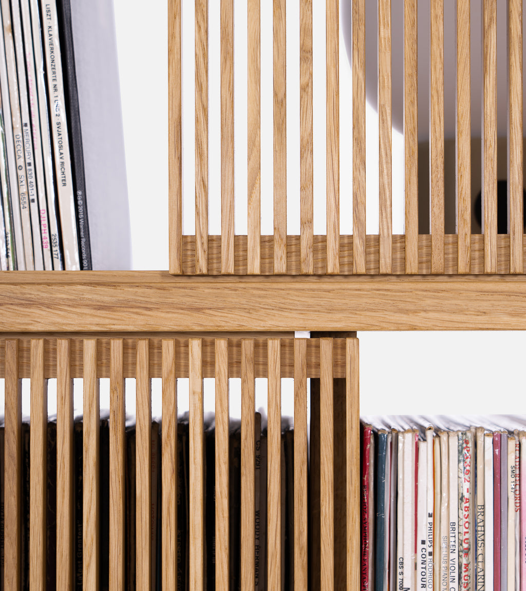 MOLL DUO – Bokhylla & Vinylförvaring – massiv ek